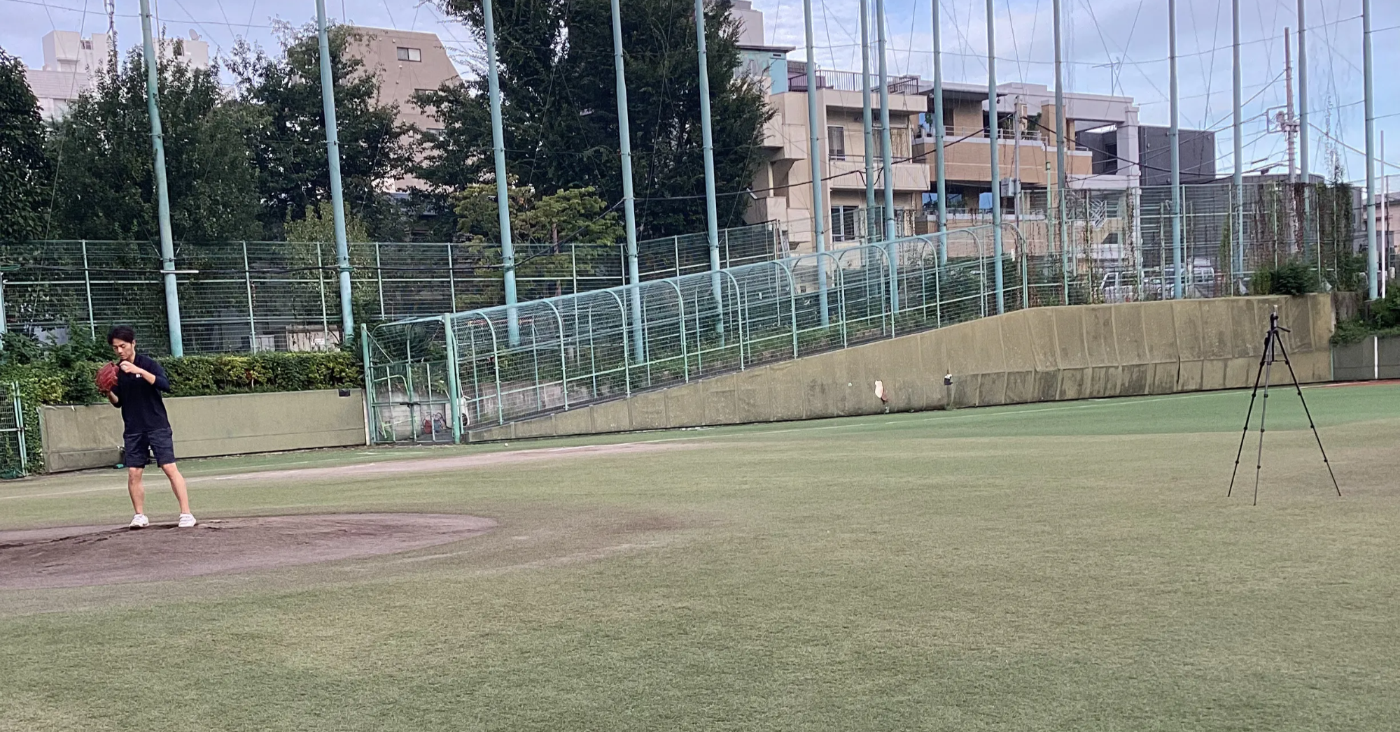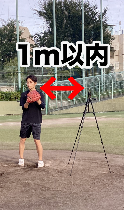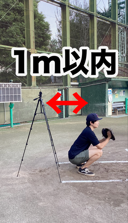 2.三脚をピッチャーの後ろまたは、キャッチャーの後ろに設置
