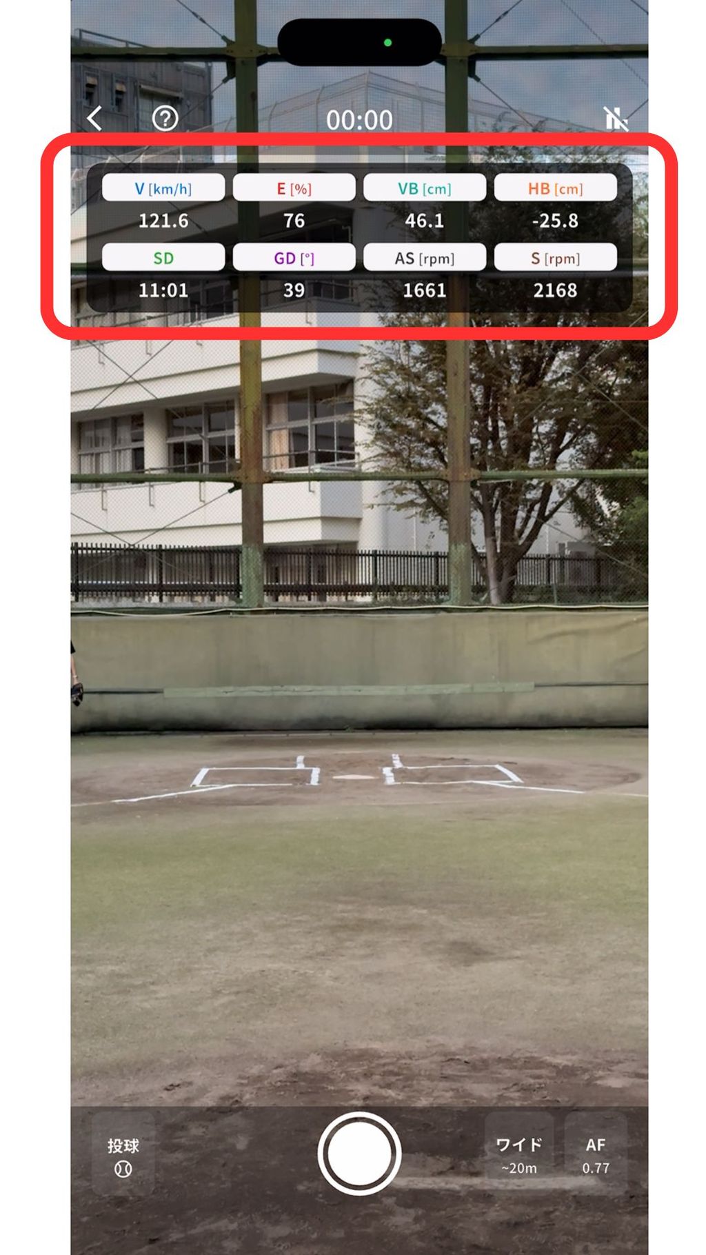 - 投球モードは18.44mの規定距離で投げられた投球を前提に設計されています。 試合またはブルペンでの計測を推奨します。