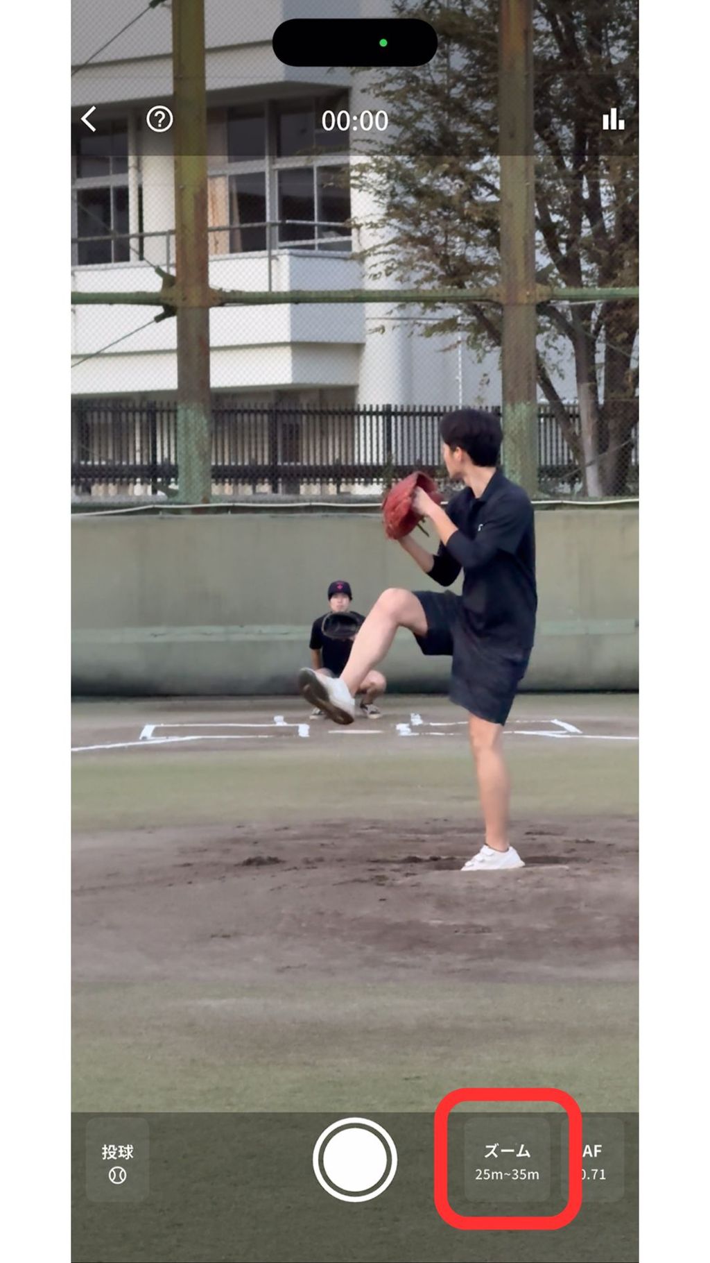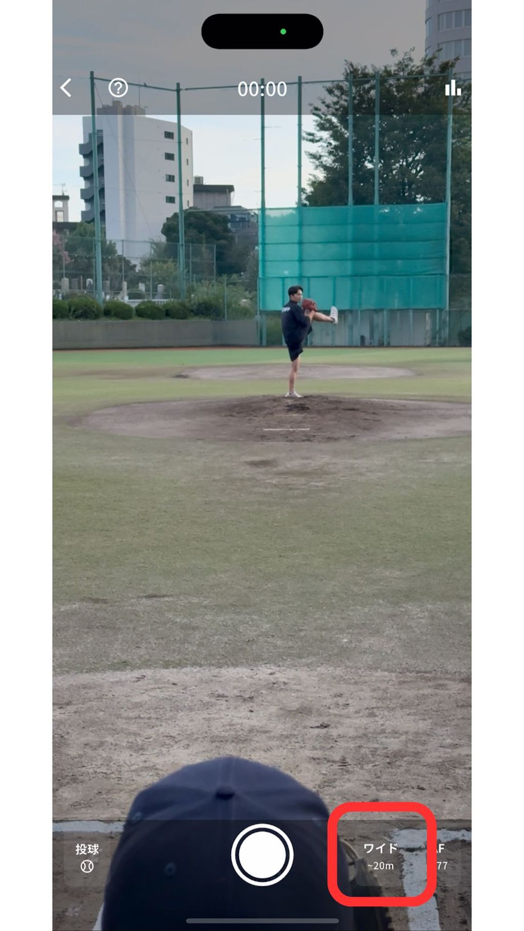 - ピッチャーまたは、キャッチャーの後ろ側から撮影してください。